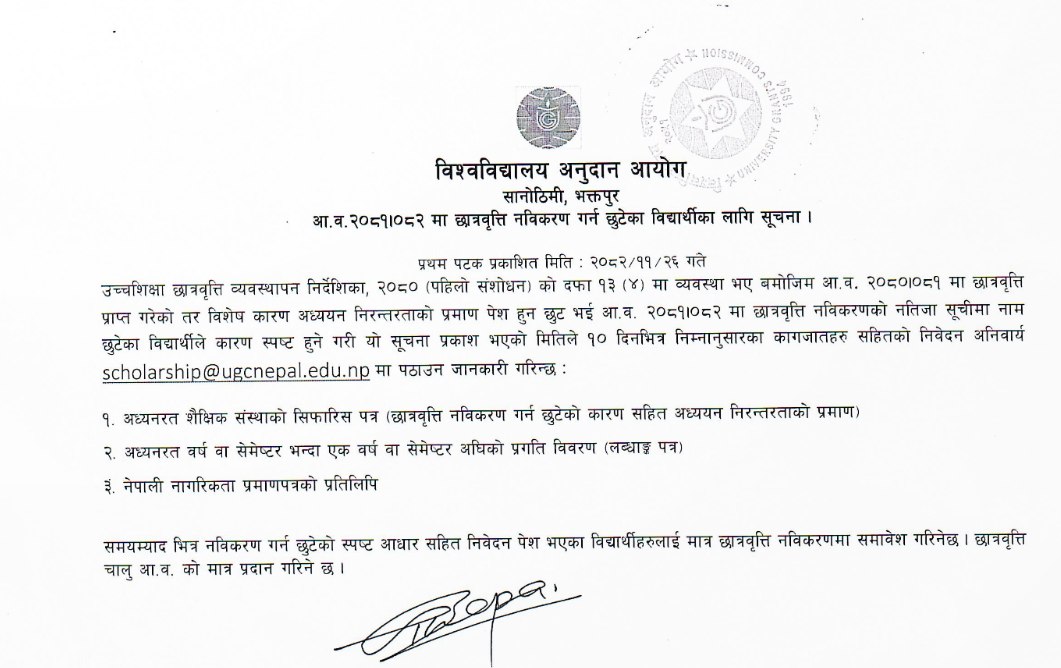 आ. व. २०८१।८२ मा छात्रवृत्ति नविकरण गर्न छुटेका विद्यार्थीका लागि सूचना ।